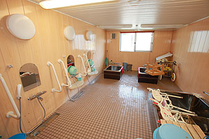 バリアフリーで清潔な施設は、安心して過ごせる空間です。 個室から、相部屋までゆったりと落ち着け、スタッフの目の行き届く施設です。